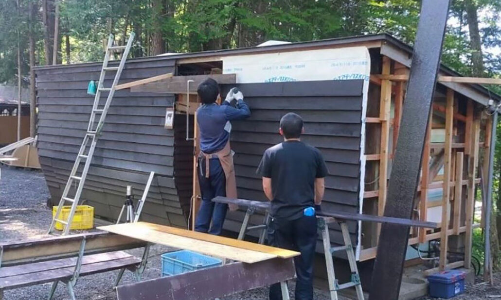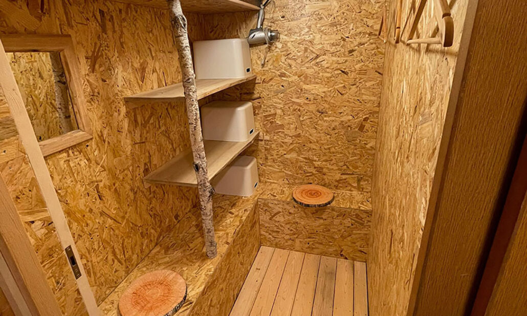 炊事場をスタッフの手で改修し、セルフロウリュができるフィンランド式サウナを作りました。